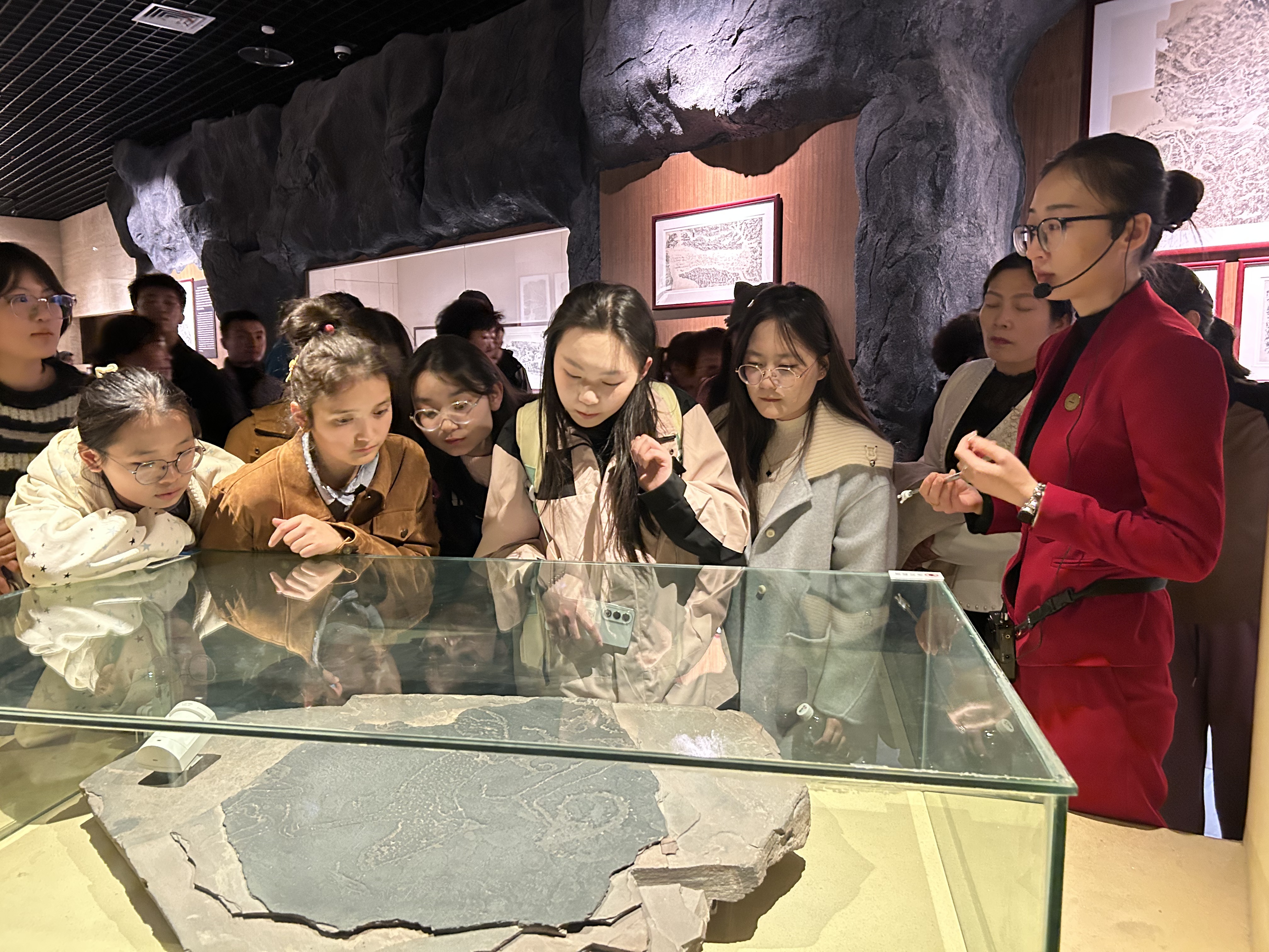 在讲解员的引导下,师生们依次参观了“朔色长天—宁夏通史陈列”“天下黄河富宁夏—宁夏民俗陈列”“红旗漫卷—宁夏革命文物陈列”“石刻史书—宁夏岩画陈列”等核心展区。在通史陈列展厅,一件件文物、一幅幅图景勾勒出宁夏大地数千年的文明脉络,让同学们深刻认识到中华民族多元一体格局的形成是历史的必然,各民族都是中华文化的创造者与传承者。民俗陈列展区中,宁夏各族人民的生产工具、生活器物、节庆礼仪等实物展示,生动再现了各族群众“像石榴籽一样紧紧抱在一起”的和睦场景,直观诠释了“中华民族一家亲”的深厚底蕴。