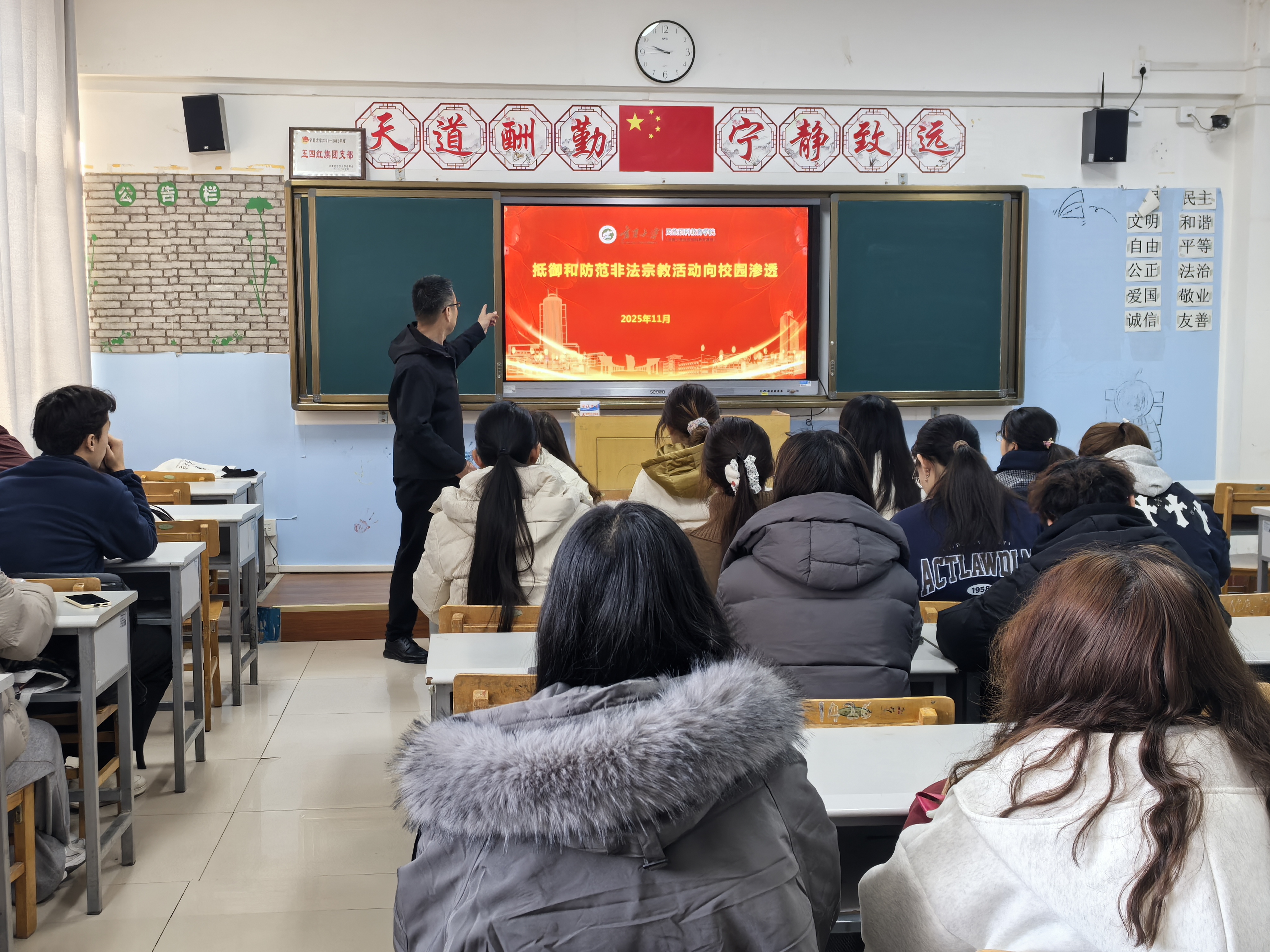 为深入贯彻落实党的民族宗教政策,建设和谐校园,切实增强全院员工抵御和防范非法宗教渗透的意识与能力,近日,体育平台官网精心组织开展了抵御和防范非法宗教向校园渗透系列宣讲活动,通过“团学骨干培训+班级主题班会”的双层模式,实现教育覆盖无死角,为校园安全稳定筑牢意识形态防线。