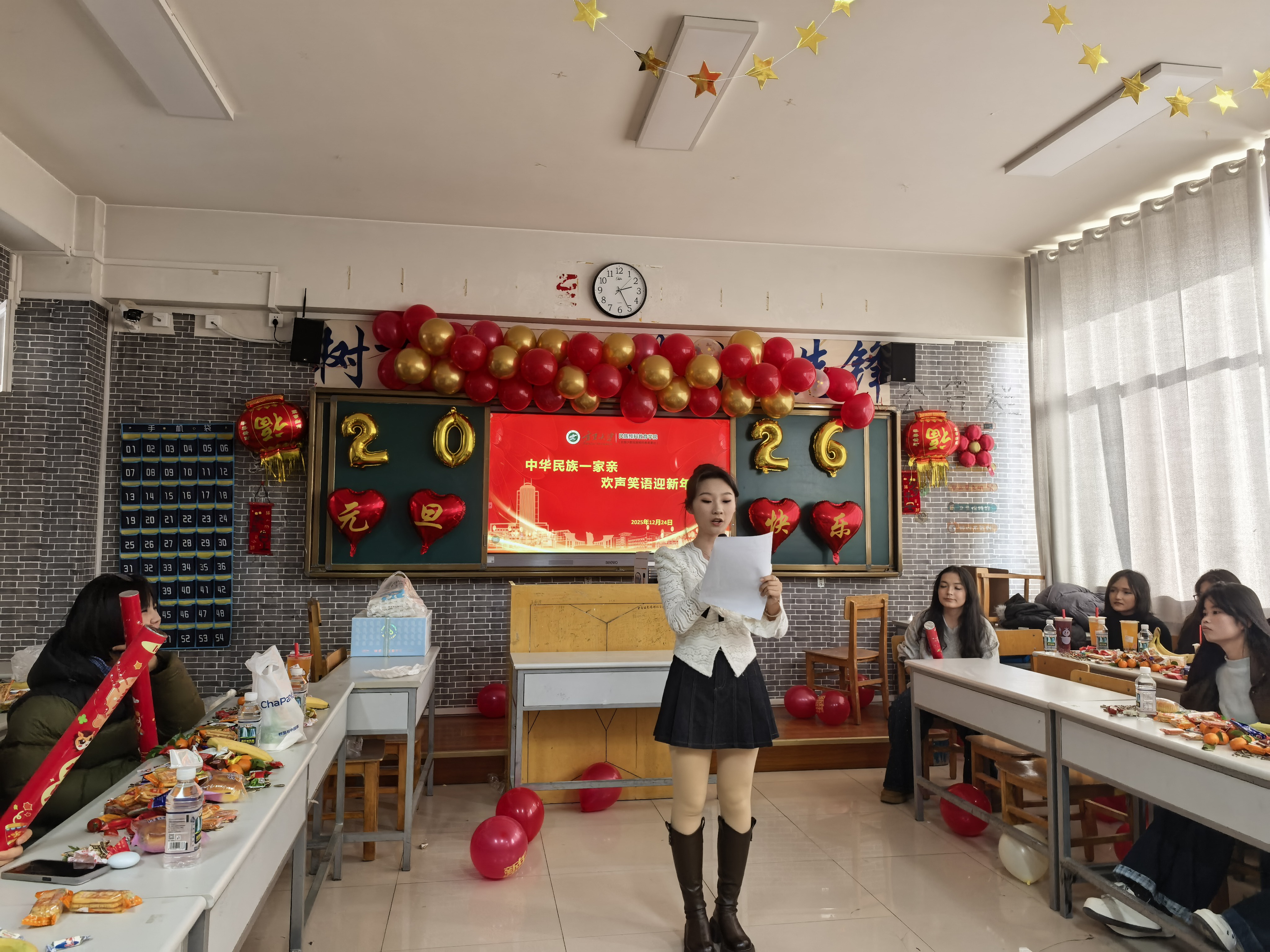 各班教室之中,彩球错落摇曳,墙壁上“元旦快乐”的字样明艳夺目,满室皆是欢乐气息。同学们精心筹备了一系列丰富的节目,有男女声独唱、民族舞蹈、情景剧、民族乐器演奏和温情满溢的集体合唱等韵味十足的文艺表演,每一项活动都如织锦之线,将各族学子的心紧密相牵。
